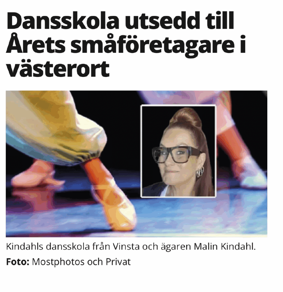 Malin Kindahl, VD för Kindahls dansskola utsågs till Årets småföretagare i västerort i oktober 2024. ”En företagare som själv är synnerligen aktiv i verksamheten och djupt förankrad i västerort”, så löd en del av motiveringen. Dessutom har skolan en värdegrund som innebär att alla ska få vara med och dansa efter sina förutsättningar.